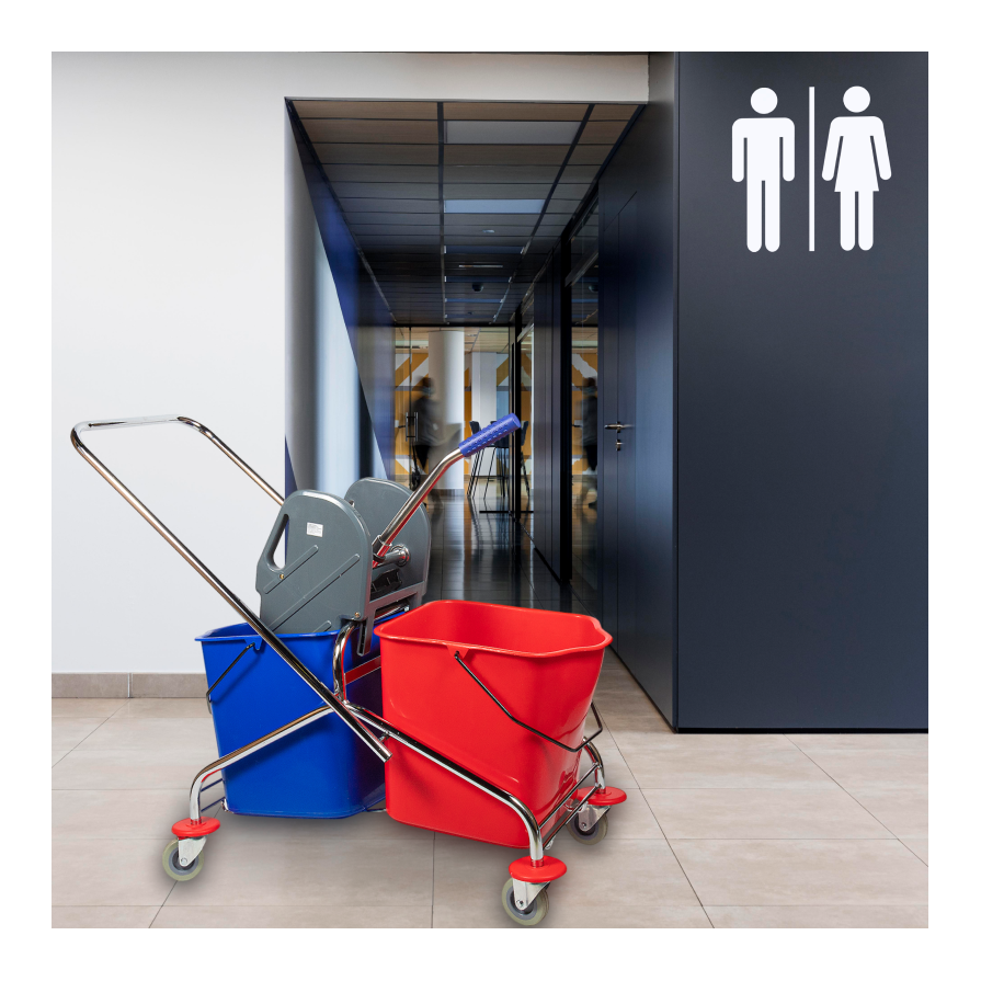 - Для клининга: с системой отжима, двойные отделения, подставка для швабры.
